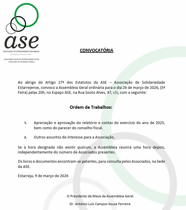 A Direção da ASE, agradece este apoio crucial para a ação desta Associação.